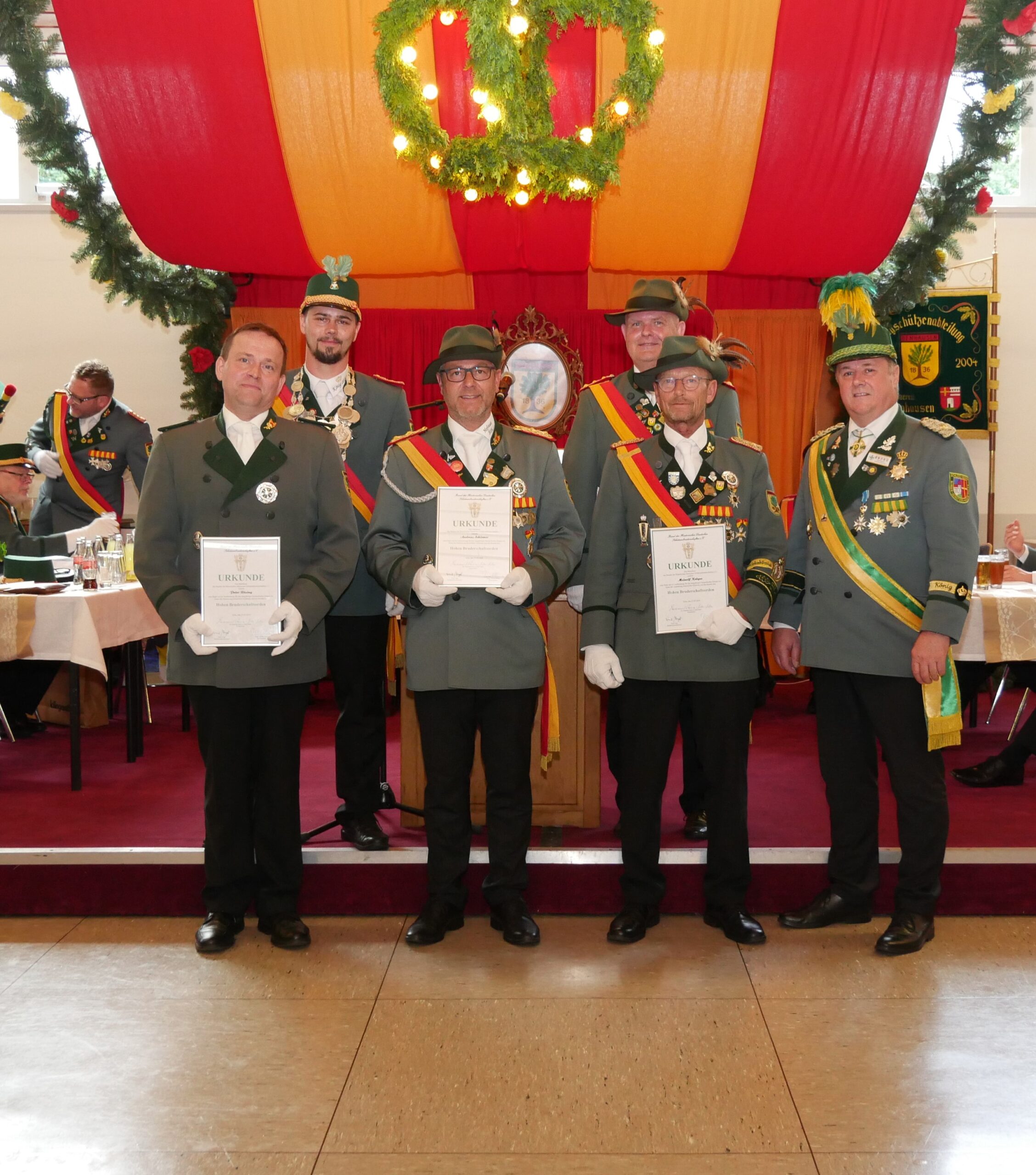Eine besondere Ehre wurde Oberstleutnant Andreas Schirmer, Peter Rüsing und Adjutant Meinolf Kröger zuteil, die den Hohen Bruderschaftsorden aus den Händen des Bezirksbundesmeisters Paderborn-Stadt, Olaf Pippert, erhielt. Im Namen des Bundes der Historischen Deutschen Schützenbruderschaften wurden zudem das St. Sebastianus Ehrenkreuz an Franz Driller und an den Kompanie-Kassierer Ost Dieter Mrugalla verliehen.