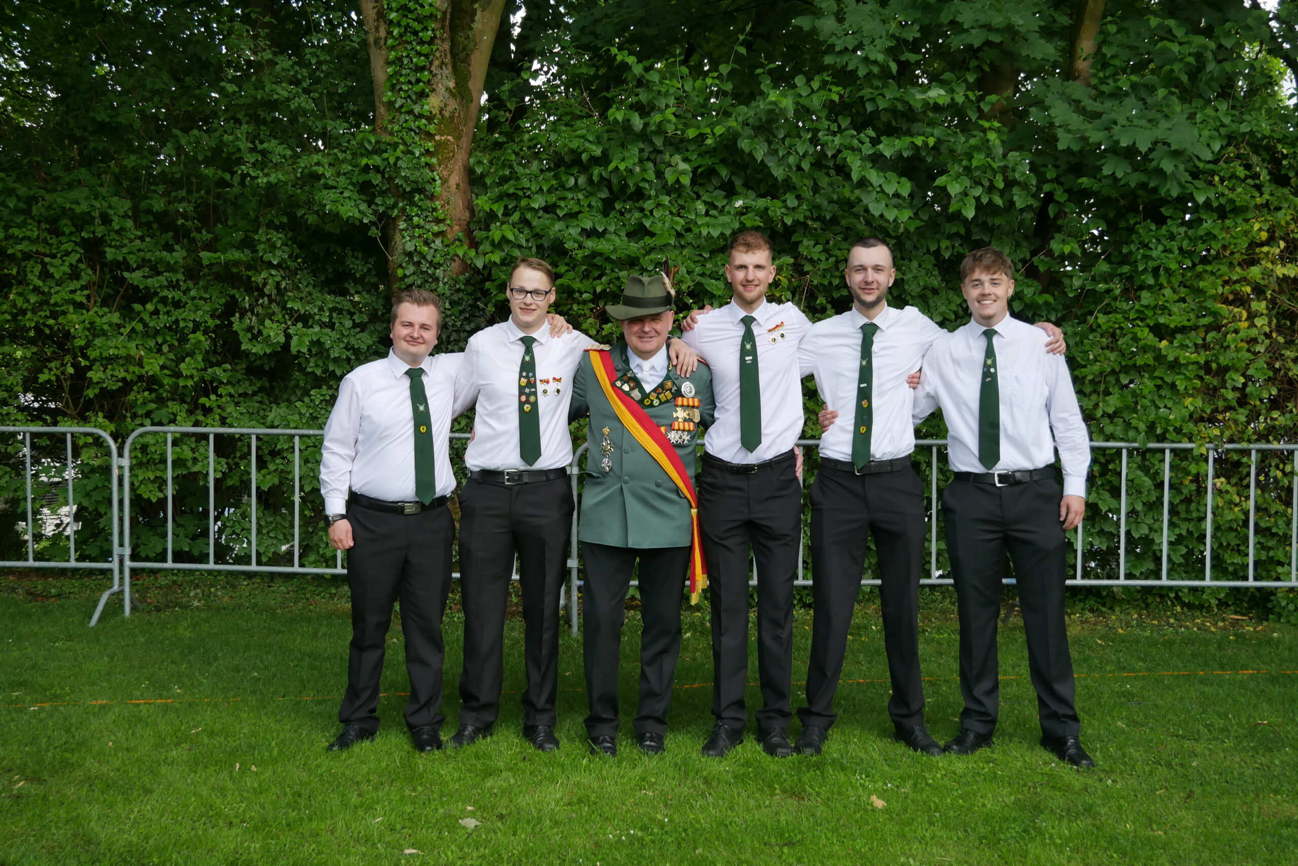 Jungschützen 2024 Lukas21 Mai 2024 v.l.n.r.: Jungschützenkronprinz: Jungschützenapfelprinz: Oberst Jungschützenkönig: Jungschützen Bierkönig: Jungschützenzepterprinz: Felix Niggemann Luca Heiermeyer Norbert Glasmeyer Julius Leiwen Nils Lübbers Marius Heiermeyer