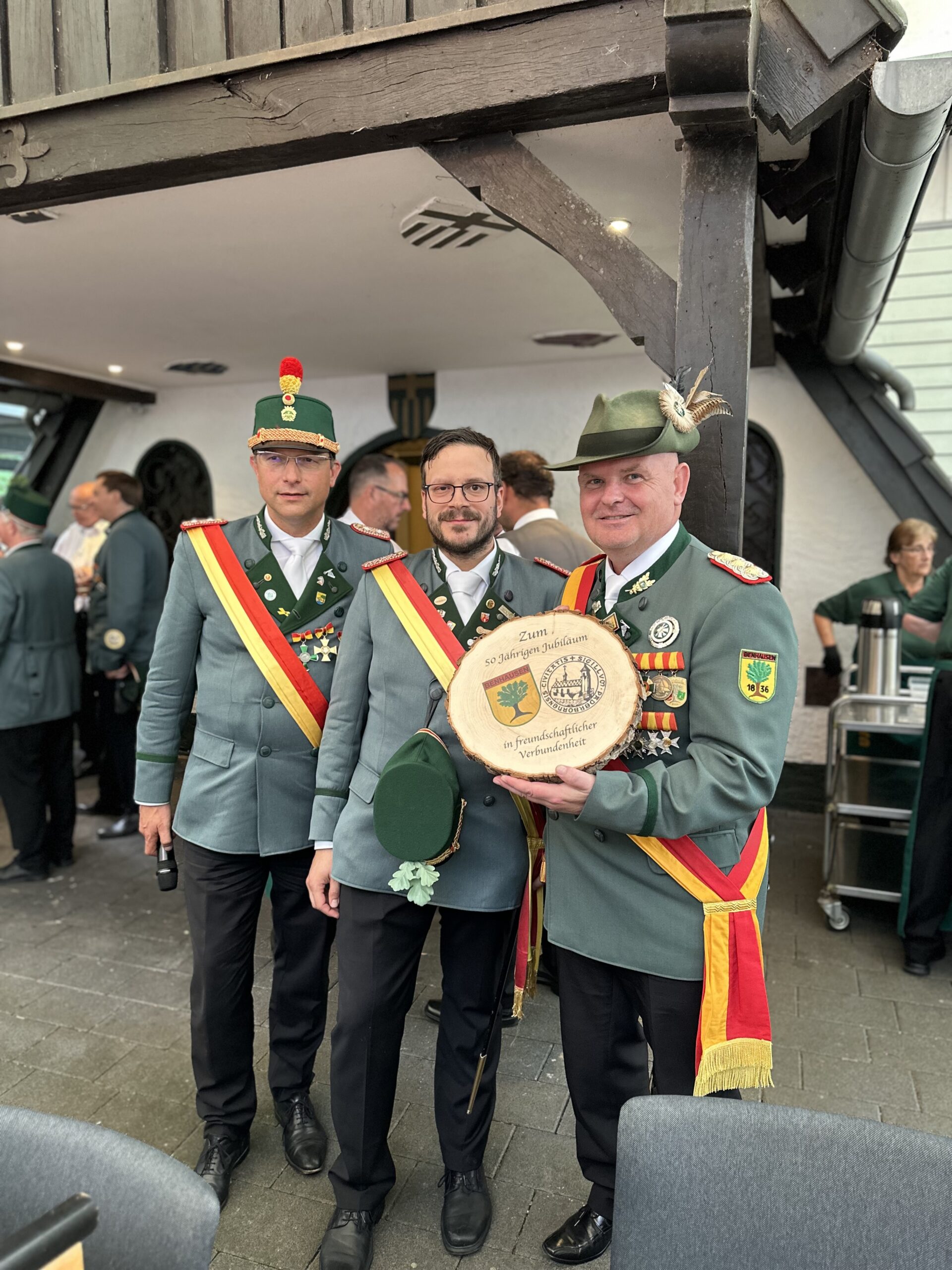 Maspern Hauptmann Hubert Salmen und Frank Schulte, 3. Leutnant sowie Verbindungsoffizier zu unserem Verein, nutzten den festlichen Anlass um Oberst Norbert Glasmeyer ein besonderes Präsent zu überreichen.